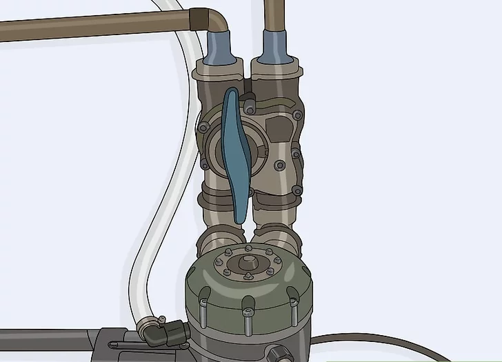 - شیرهای ورودی و خروجی متصل به شیلنگ ها را ببندید. شیر های ورودی و خروجی دو دستگیره پلاستیکی است که در آن دو شلنگ به بقیه لوله ها وصل می شوند. برای بستن آنها، آنها را 90 درجه به صورت عمود بر شیلنگ ها بچرخانید. دستگیره ها چیزی شبیه بال در طرفین دارند که به شما نشان می دهد که به چه صورت چرخانده شده اند. هنگامی که بال ها از خط لوله عبور می کنند، بسته می شوند و وقتی که مطابق لوله وصل می شوند، باز هستند.